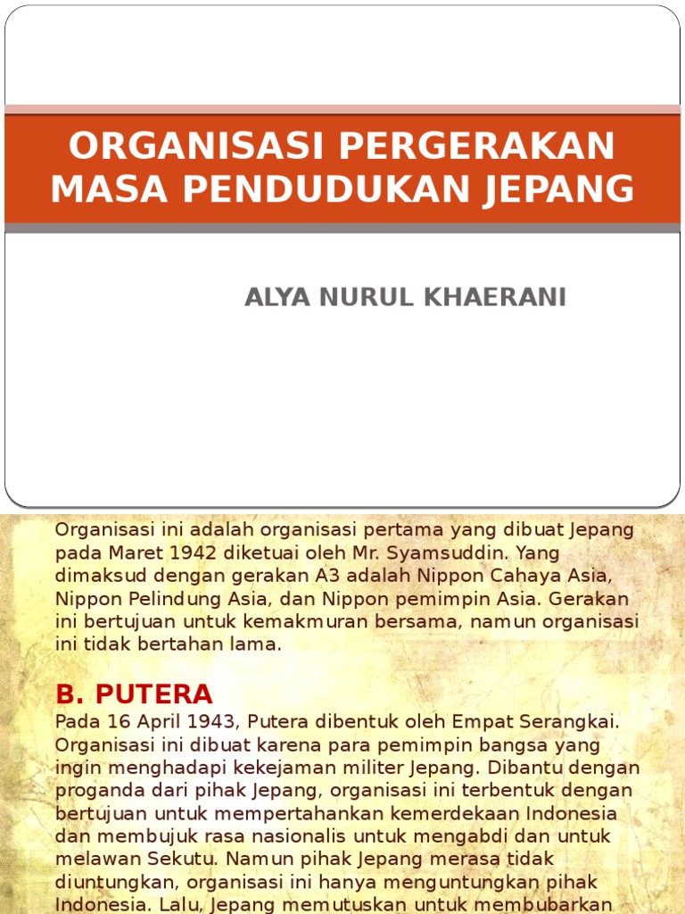 Organisasi ini bernama putera (pusat tenaga rakyat) yang didirikan pada bulan maret 1943 sekian penjelasan mengenai organisasi pergerakan nasional pada masa pendudukan jepang. Terjawab • terverifikasi oleh ahli. Gerakan 3a, pusat tenaga rakyat. Penyebab utama dari dilakukannya pemberontakan peta di blitar yaitu dikarenakan.