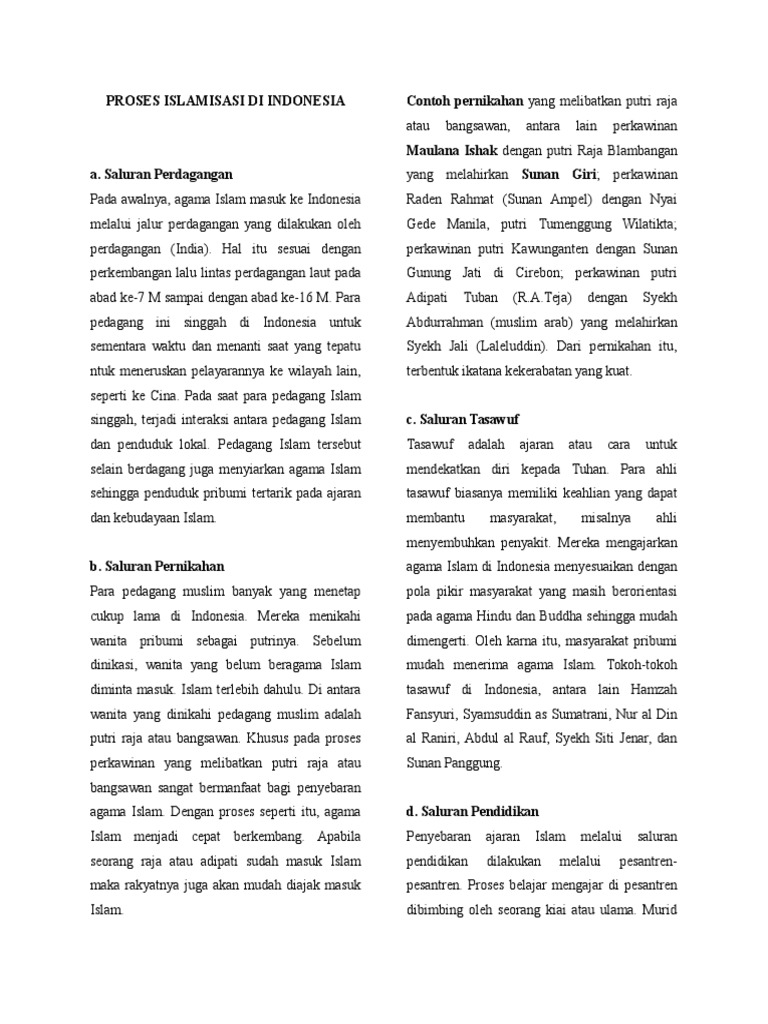 Materi proses masuknya islam di indonesia proses masuknya islam ke indonesia dilakukan secara damai dengan cara menyesuaikan diri dengan adat istiadat penduduk lokal yang telah lebih dulu ada.