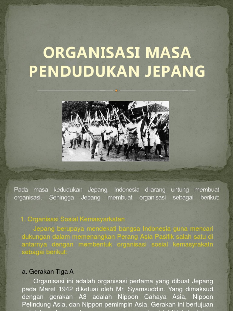 Download Infografis Tentang Organisasi Pada Masa Pendudukan Jepang Di Indonesia Background. Karena pemerintahan pendudukan jepang di indonesia dipegang oleh militer, maka semua jenis kegiatan diarahkan untuk kepentingan perang. Proses, latar belakang, organisasi, perlawanan, dampak dan upaya semoga bermanfaat untuk.